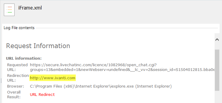 Access to the site is allowed but the URL of the inline frame is prohibited so the browser gets stuck in a loop, redirecting to itself. During this process, Rules Analyzer logs details of any redirecting inline frames.