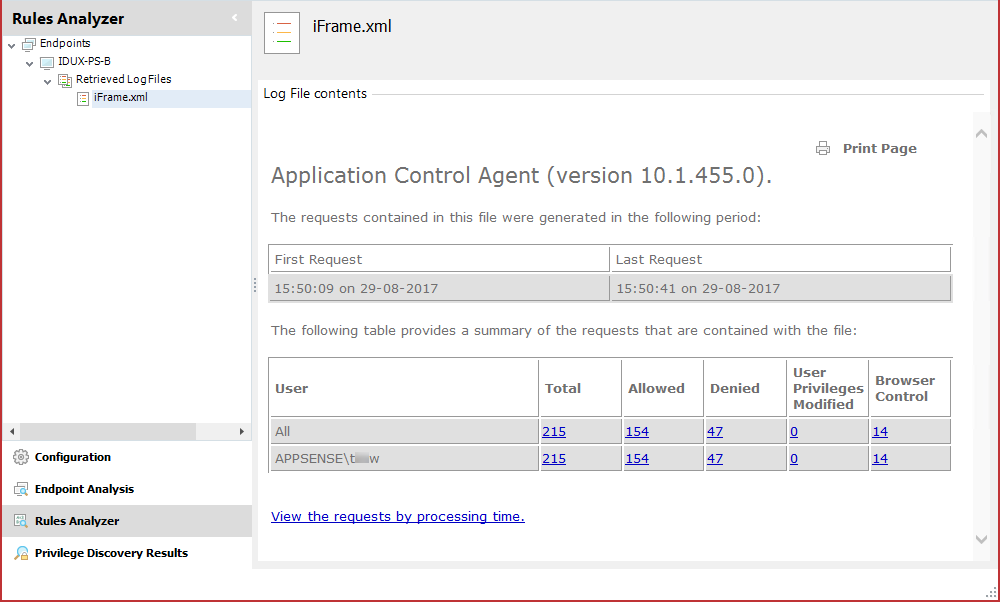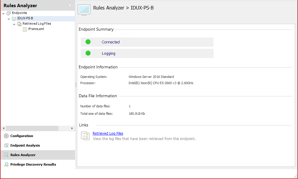 You must be logged on with an account that allows read and write access to the registry of any managed endpoint for which you wish to generate logs for using Rules Analyzer, and have read and write access to the local registry of the computer on which the console operates.