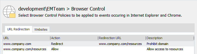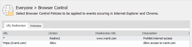When the configuration is deployed to your users, they will not be able to access any website other than those configured in URL Redirection items with allow actions.