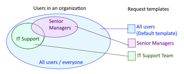 Here, a senior manager within the IT Support team belongs to all three user groups but only one template request template can be assigned to an individual.