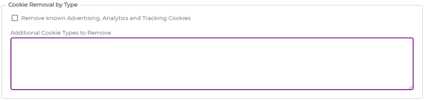 To remove cookie types identified as being used for advertising or tracking purposes enable the option: Remove known Advertising, Analytics and Tracking Cookies
