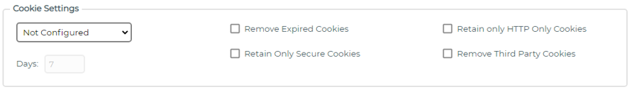 To allow cookies to be retained for a specified number of active browsing days, select the option: Retain Browsing Days, and specify a number of days.