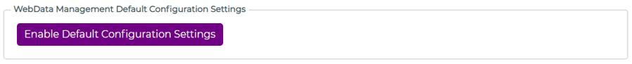 The WebData Management Default Configuration Settings automatically selects settings within the Browser Manager console. The Enable Default Configuration Settings button can be used to quickly apply recommended settings to the basic configuration of WebData Management. The recommended settings will be applied in the WebData Management settings tabs in the Console.