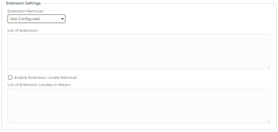 Note: For the Extensions to be removed and Extensions to be retained options the verification will use an exact text match (case insensitive). However wildcard use is supported to perform a contains check.