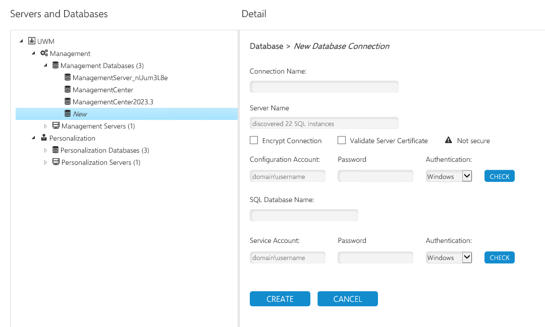 You can create databases for both the Management and Personalization servers.