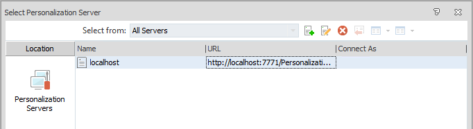 It is recommended that, where possible, multiple servers are added to the Select Personalization Server dialog so alternative servers can be connected to for failover purposes.