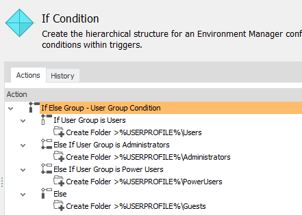 The action associated with that condition is carried out; a folder called Administrators is created on the user’s C drive. As a condition has been met, no further evaluation occurs for this group.