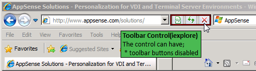 Relates to toolbars and toolbar options in applications such as any of the selected toolbars in Internet Explorer or the Back button.