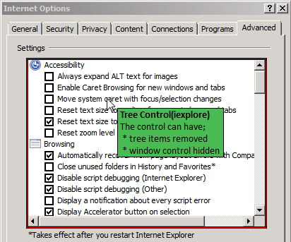 Relates to hierarchical structures such as the folder structure in Windows Explorer Advanced Internet Options.