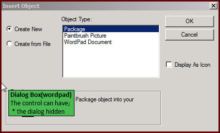 Relates to windows which open separate to the application such as the Insert Object dialog box in WordPad.