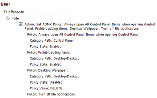 When applying an ADMX action that results in a change to a multi-string value, Environment Manager appends to existing data.