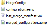 In addition to the new configuration (Merged_Configuration.aemp) a copy of the successful manifest is created, renamed as last_merge_manifest.xml, to provide a record of the merge and a backup of the manifest. If present, the original merge_manifest.aemp file is deleted when the merge is complete.