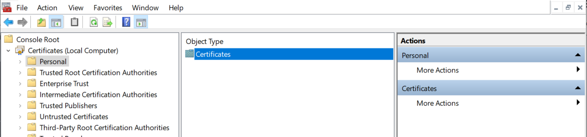 Select Certificates in the center panel, right-click and select All Tasks > Request New Certificate.