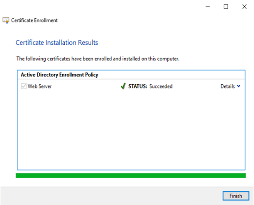 - Click Upload Certificate and your certificate should be installed and enrolled for the host name you specified in the Certificate Subject.
