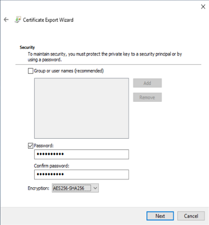 In the export file format section, select Include all certificates in the certification path possible and click Next.
