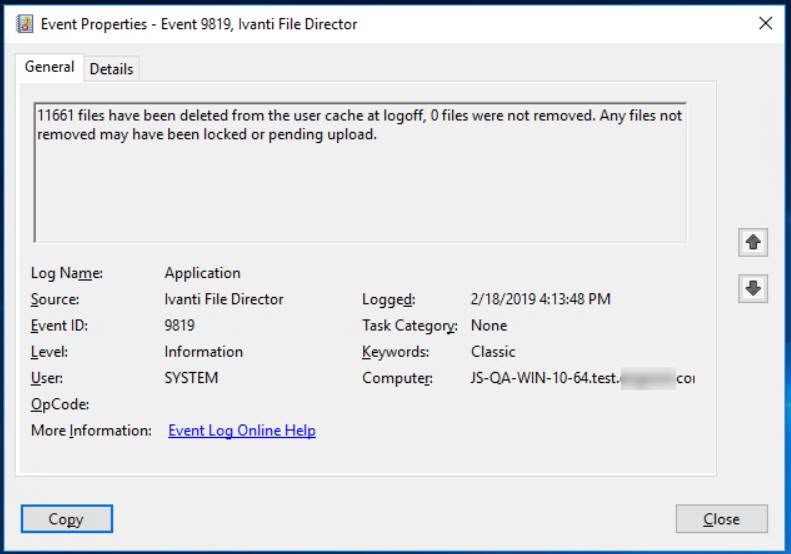 Although File Director uses synchronous logoff, if cleanup at logoff is enabled large volumes of cached files can impact logoff duration.