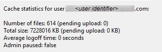At the end of the logon synchronization (which runs shortly after logon) an audit of the cache is performed. Key information including the cache size and the number of files loaded and pending are reported for each user.