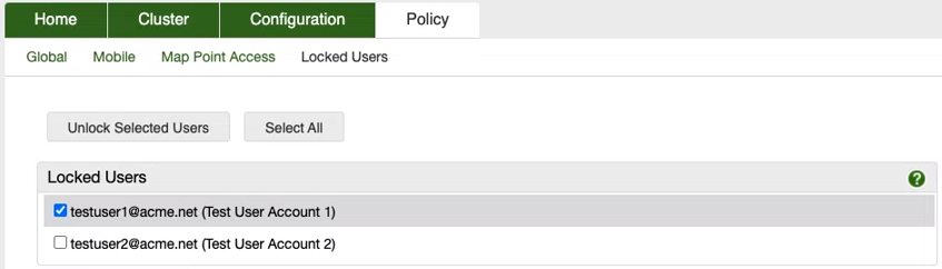 Select the user account required and click Unlock Selected Users. Alternatively, click Select All to select and unlock all locked accounts.