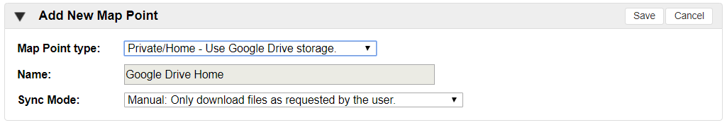 In the Map Point Type list, click the drop-down arrow and select Private/Home - Use Google Drive storage.