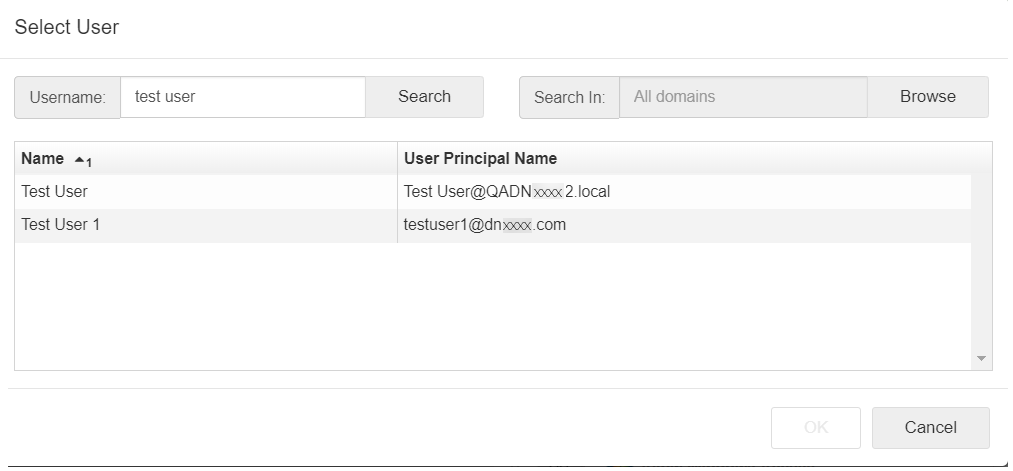 - Individual Users - Select a user name and click OK. If required, click Add to include other individual user names.
