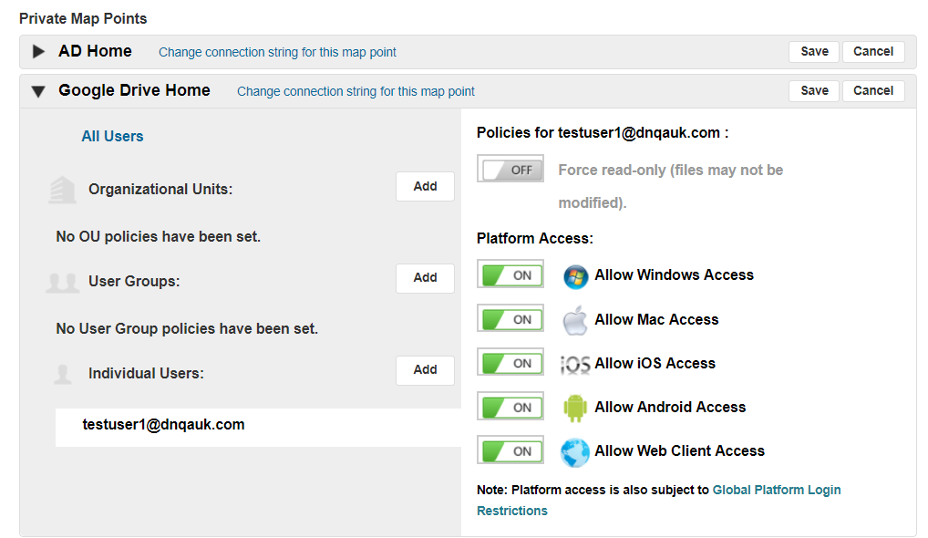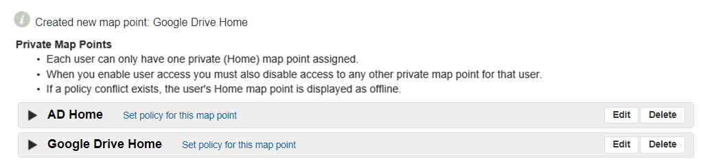 Click Configuration > Map Points. Next to the Google Drive Home map point click Set policy for this map point.
