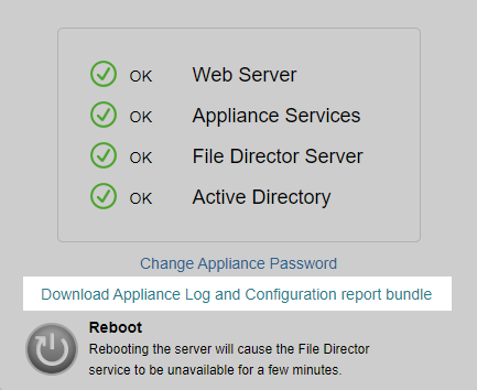 You can download configuration reports and appliance logs which can be used by Ivanti support to check your installation, performance and to troubleshoot your appliance.