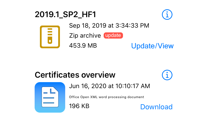 Depending upon the configuration of File Director, the HD app will retrieve file data from the server at regular intervals and identify when updated or added files are available. The number of updated files available is added to the tab bar icon (see iOS HD app views), and the specific file is highlighted within each relevant view.