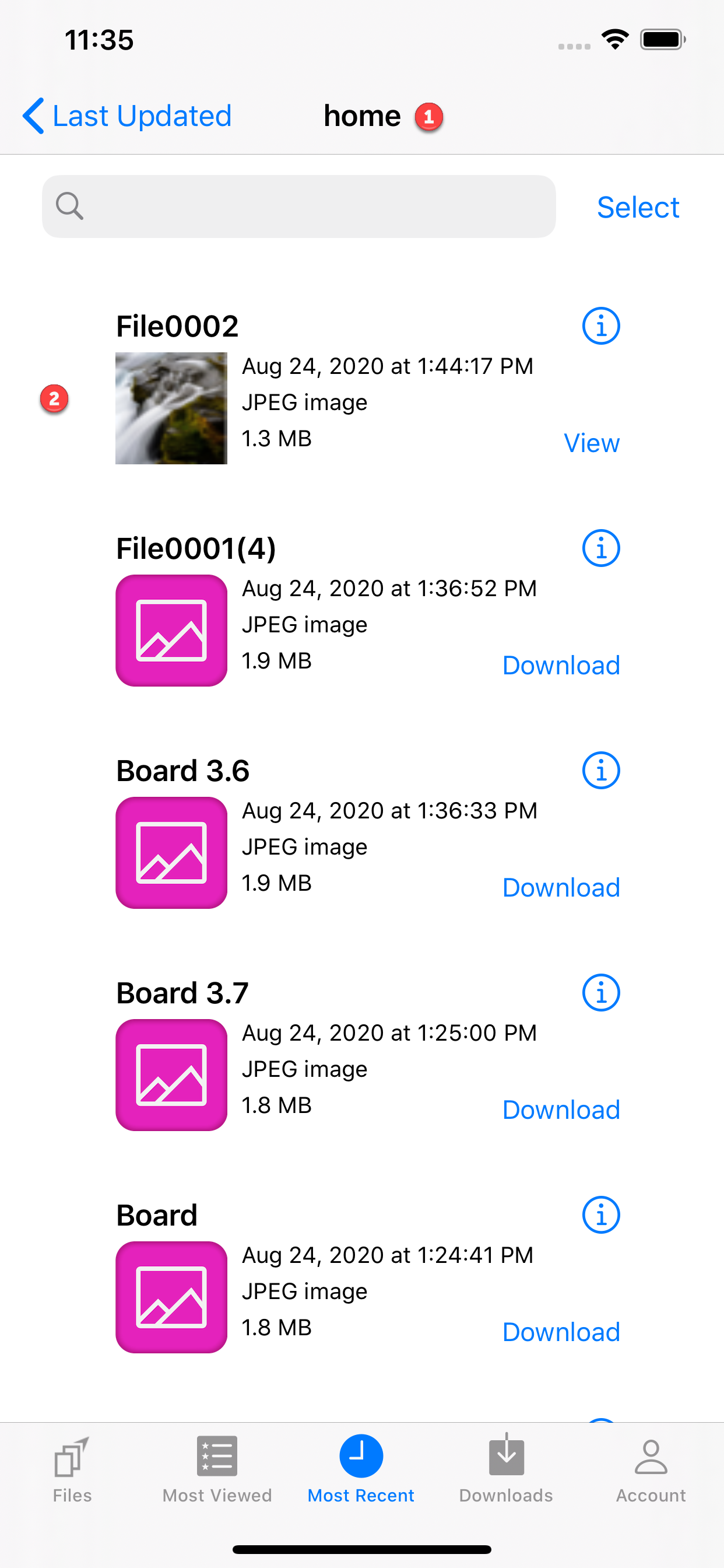 Icon overlay The overlay can apply to the following views: Files, Most Viewed and Most Recent. |