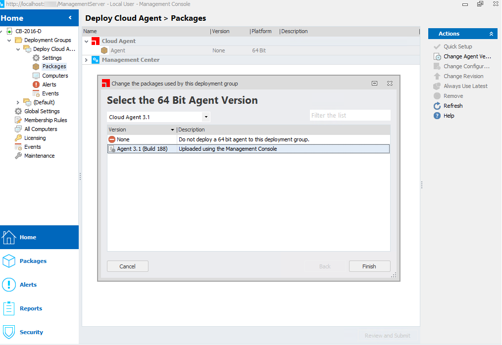 Once an agent, patch or configuration package has been uploaded to the Management Server it is available for assignment to a deployment group.