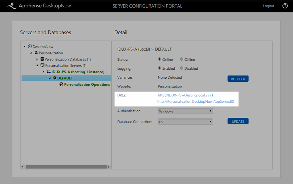 Personalization Operations is installed with the Personalization Server and configured in the Server Configuration Portal (SCP). Once the administrator has configured the Personalization Server instance, the SCP displays the URLs where users can access the Personalization Operations web console.