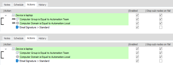 たとえば、ポリシー構成ナビゲーション ツリー内の条件の位置は、適用方法を決定します。ツリー内の同じレベルの条件が同時に評価されます。他の条件の子である条件は、親条件が正常に実行された後にのみ評価されます。