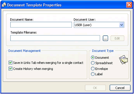 In both cases you can create new templates. The most common options for creating a document are using WordPad and Microsoft Word with GoldMine Plus for Microsoft Office installed.