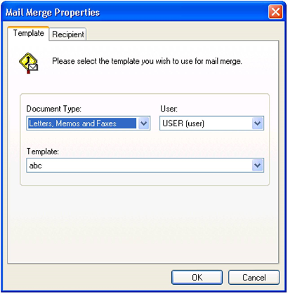 At the User field, select and user and, if it does not already appear, at the Template field select the template for the mail merge,