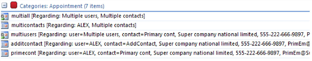 ○ If the activity has multiple contacts, the CalSubjectPattern is ignored and the text “multiple contacts“ is inserted in its place.