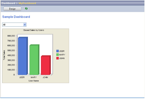 After adding all the Dashboard Parts to the Sample Dashboard, you can continue to experiment by adding additional Dashboard Parts, Splitters (see Working with Splitters), and Tabs (see Working with Tabs).