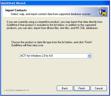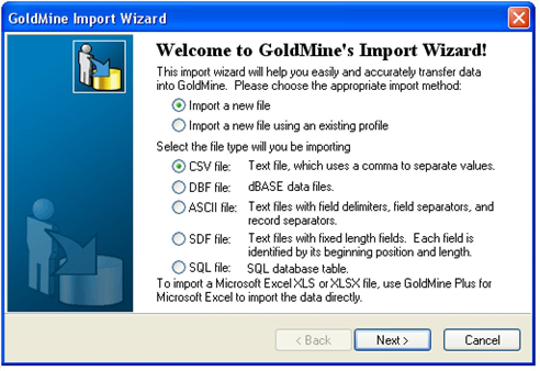 Import data from other contact management applications into GoldMine, eliminating data entry. Incorporate new data into GoldMine and begin using it.