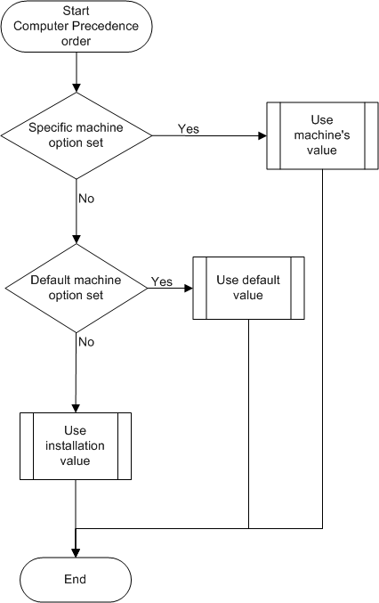 Is a specific machine option set? Yes = use the machine's value; No = Is a default machine option set? Yes = use the default value; No = Use the installation value