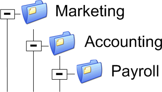 The File Group Accounting is the child of Marketing who also has an indirect child Payroll: