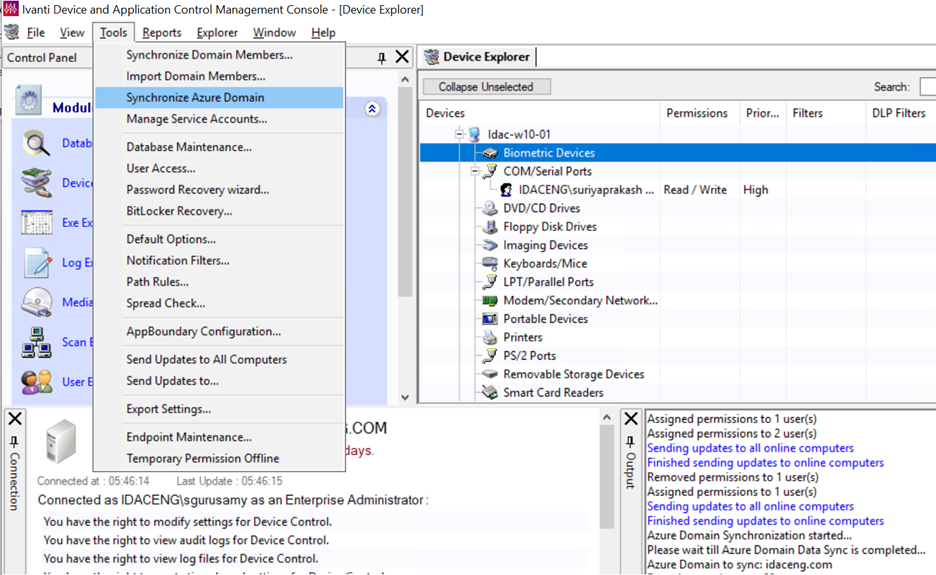 You can synchronize Ivanti Device and Application Control with Azure Domain using two methods: