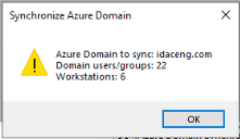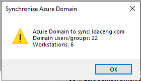 Click OK. If the authorization token is valid, you will receive a message indicating successful synchronization of Azure users, groups, and devices, as shown below.