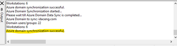 If the access token is valid and the Azure Tenant ID, Client ID, and Client Secret are correctly configured in the SXS registry, you will receive a synchronization message for Azure users, groups, and devices as shown below.