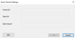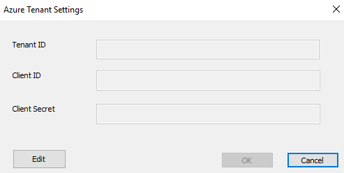 Click Edit to configure the Azure domain credentials. Enter the required values, then click OK to save the settings.
