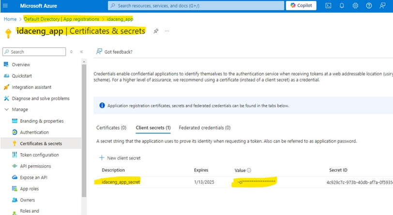 - AzureClientSecret=-ci8Q~mx~QWPLgYltlzJVTT-gPxMhHT1qrl-Dc4b