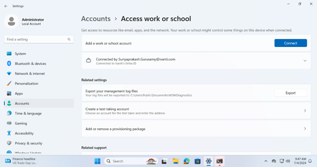 An endpoint Microsoft Entra ID joined machine view as shown below.