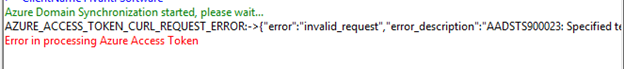 Below is an example if we don’t configure AzureTenantId value correctly in registry.