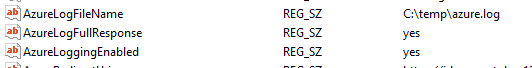 By default, the AzureLoggingEnabled and AzureLogFullResponse values are set to no, and AzureLogFileName is set to NULL. If you configure the logging parameters as follows: