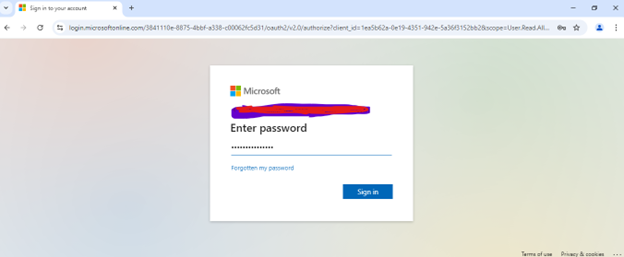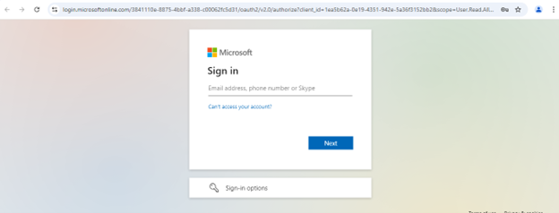 Enter the Azure Global Administrator account credentials that have permission to authorize Delegated Graph API permissions.