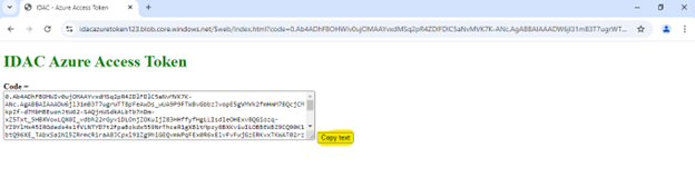- AzureRedirectUri= https://idacazuretoken1234.blob.core.windows.net/web/Index.html