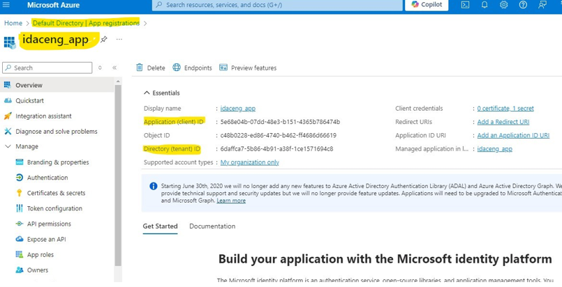- Customers must configure the following three credentials to connect with their Azure domain: Tenant ID, Client ID, and Client Secret.