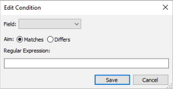 - Select the Field and Aim, then enter the Regular Expression and click Save.